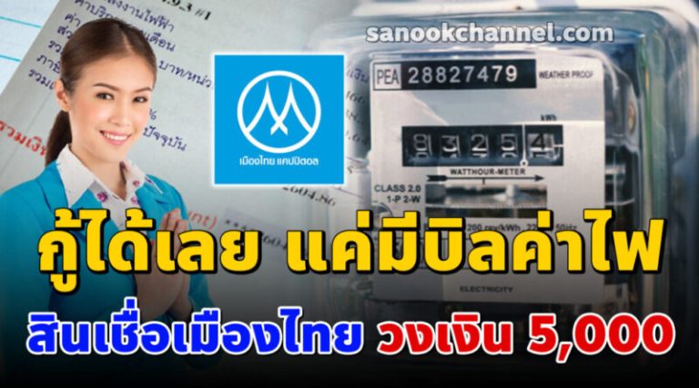 เมืองไทยแคปปิตอล ไม่เช็คบูโร ไม่ต้องมีคนค้ำ กู้ได้ 20,000 บาท อนุมัติง่าย ทุกอาชีพ